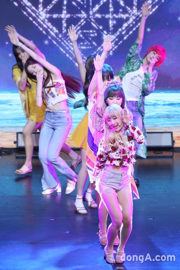 그룹 공원소녀가 23일 오후 서울 광진구 예쓰24라이브홀에서 열린 세 번째 미니앨범 ‘밤의 공원 part three(THE PARK IN THE NIGHT part three)’ 발매 쇼케이스에서 새로운 무대를 선보이고 있다.