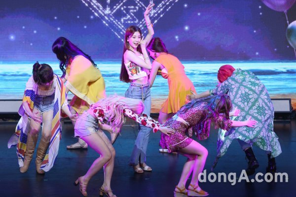 그룹 공원소녀가 23일 오후 서울 광진구 예쓰24라이브홀에서 열린 세 번째 미니앨범 ‘밤의 공원 part three(THE PARK IN THE NIGHT part three)’ 발매 쇼케이스에서 새로운 무대를 선보이고 있다.