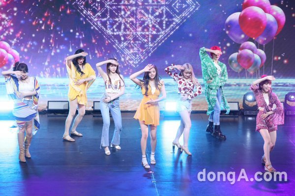 그룹 공원소녀가 23일 오후 서울 광진구 예쓰24라이브홀에서 열린 세 번째 미니앨범 ‘밤의 공원 part three(THE PARK IN THE NIGHT part three)’ 발매 쇼케이스에서 새로운 무대를 선보이고 있다.