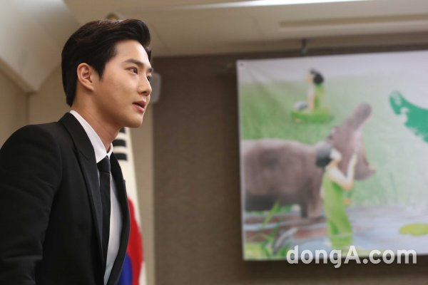 그룹 엑소의 수호(김준면)가 24일 오전 서울 중구 프레스센터에서 열린 제7회 순천만세계동물영화제 공식기자회견에 참석하고 있다.
