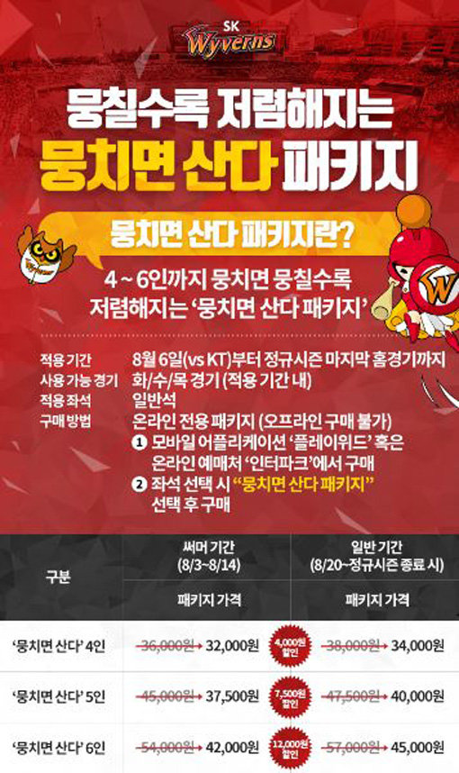 SK 와이번스가 여름 휴가철을 맞아 야구장을 방문하고자 하는 팬들이 편리하게 이용할 수 있는 패키지 티켓 3종을 출시한다.
