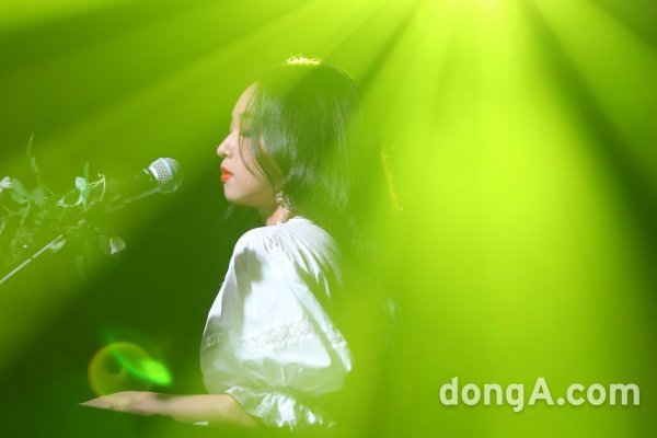 가수 신유미가 24일 오후 서울 용산구 현대카드 언더스테이지에서 열린 EP 앨범 \'소 어딕티드 투 유(So Addicted to You)\' 발매 쇼케이스에서 새로운 무대를 선보이고 있다.