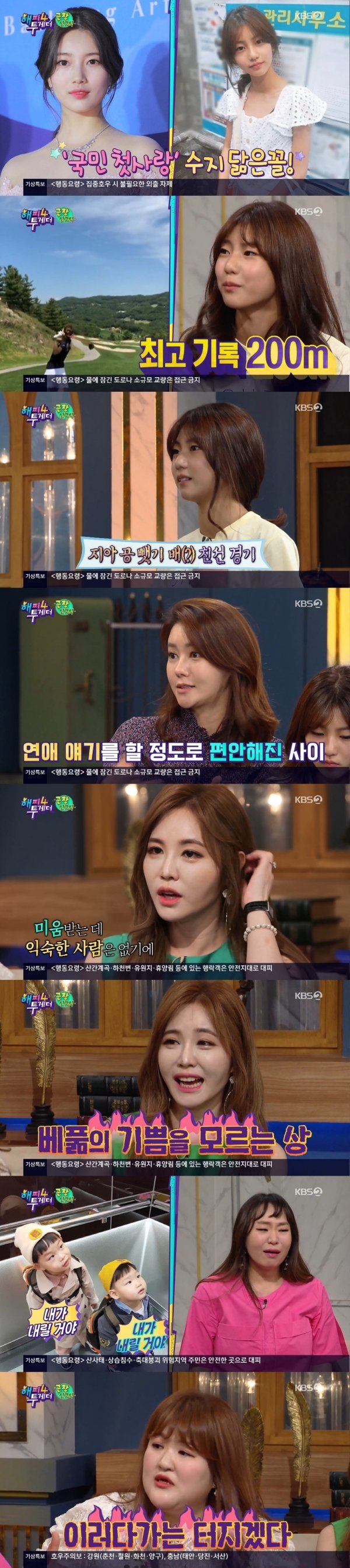 7월 25일 방송된 KBS 2TV ‘해피투게더4’(이하 ‘해투4’)는 ‘근황 신고식’ 특집으로 꾸며졌다. 이날 방송에서는 한동안 방송에서 활발하게 활동하다가 요즘은 뜸했던 스타 박연수, 송지아, 정주리, 이국주, 강예빈이 출연해 최근 근황을 전했다.