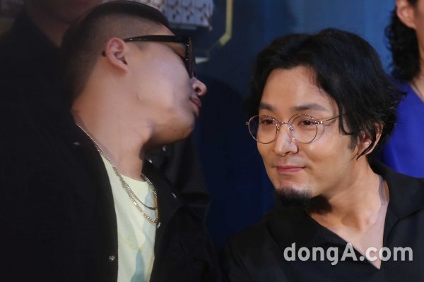 레퍼 스윙스(왼쪽)와 버벌진트가 26일 오후 서울 마포구 CJ E&M센터에서 열린 Mnet \'쇼미더머니8\' 제작발표회에서 대화를 나누고 있다.