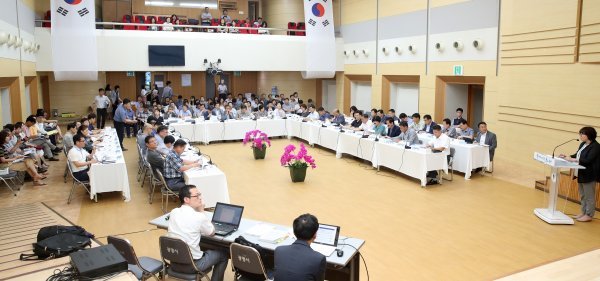 각 국·과장, 주무팀장 등 100여 명의 공무원이 참석한 가운데 진행된 보고회는 향후 10년 간 광명시를 이끌 미래 비전을 공유하고, 각 분야별 정책을 점검해 실효성 있는 전략을 수립하기 위해 마련됐다.
