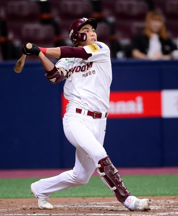 26일 서울 고척스카이돔에서 ‘2019 신한은행 MY CAR KBO리그’ NC 다이노스와 키움 히어로즈의 경기가 열렸다. 키움 이정후가 3회말 1사 1,3루에서 적시타를 치고 있다.
