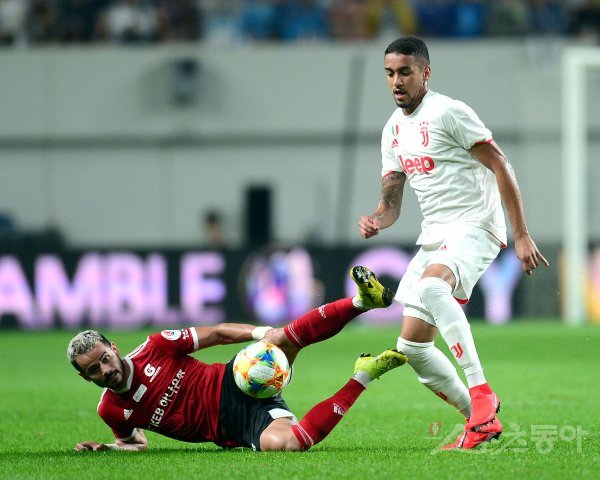 26일 서울월드컵경기장에서 열린 ‘팀 K리그 vs 유벤투스 FC Friendly Match 2019 in Seoul‘에서 팀 K리그 세징야가 유벤투스 페레이라에게 태클을 걸고 있다.