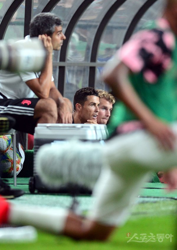 26일 서울월드컵경기장에서 열린 ‘팀 K리그 vs 유벤투스 FC Friendly Match 2019 in Seoul‘에서 유벤투스 호날두가 벤치에서 경기를 바라보고 있다.