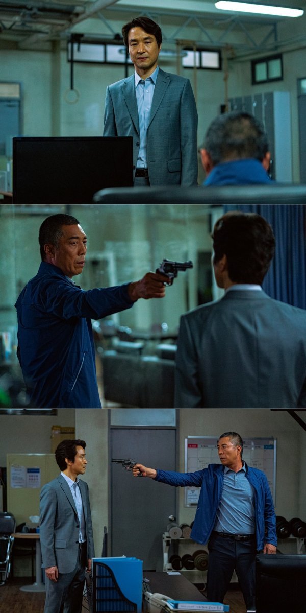 도치광과 김재명은 서로를 경계하면서도 적대적 감정을 수면 위로 드러내지 않았다. 속내를 감춘 채 서로의 의중을 탐색하며 내밀한 대립각을 세웠던 기존의 만남과 달리, 비리수사팀에서 포착된 두 사람 사이에 일촉즉발의 긴장감이 감돈다. 공개된 사진 속 도치광의 머리에 총을 겨눈 김재명의 표정은 분노로 가득하다. 반면 도치광은 죽음도 두렵지 않은 듯 포커페이스로 김재명과 팽팽하게 맞선다. 한 걸음도 물러서지 않는 도치광과 김재명의 대치는 금방이라도 일이 터질 것 같은 아슬아슬함으로 궁금증을 자극한다. 도치광과 김재명의 대립이 진실의 도화선을 당기게 될지 주목되는 부분.