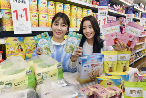 홈플러스가 8월14일까지 여름 방학 및 바캉스 시즌을 맞아 먹거리, 생필품, 뷰티 상품 구매 시 하나 더 증정하는 ‘1+1 득템찬스’ 행사를 진행한다. ‘썸머 블랙버스터 구운 아몬드&호두’, ‘립톤 아이스 티’, 물티슈 등 가공식품과 생활용품 총 600여 종을 선보인다.