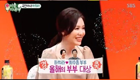 SBS ‘미운 우리새끼’ 28일 방송에는 하희라가 게스트로 출연했다. 이날 MC 신동엽은 “최수종, 하희라 씨에 축하드릴 일 있다. 2019 세계 부부의 날 국회 행사에서 올해의 부부대상을 받았다”며 축하했다.