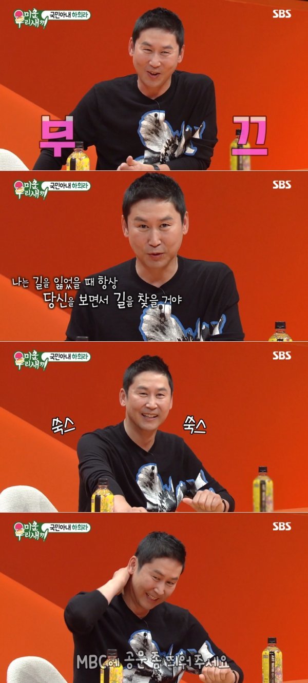 신동엽은 28일 방송된 SBS ‘미운우리새끼’에서 아내이자 MBC PD인 선혜윤 PD에게 영상편지를 전했다. 그는 출연진들의 요청에 “집에서 워낙 많이 표현한다. 아내가 그만 좀 하라고 할 정도”라며 “부끄럽다”고 손사래를 쳤다.
