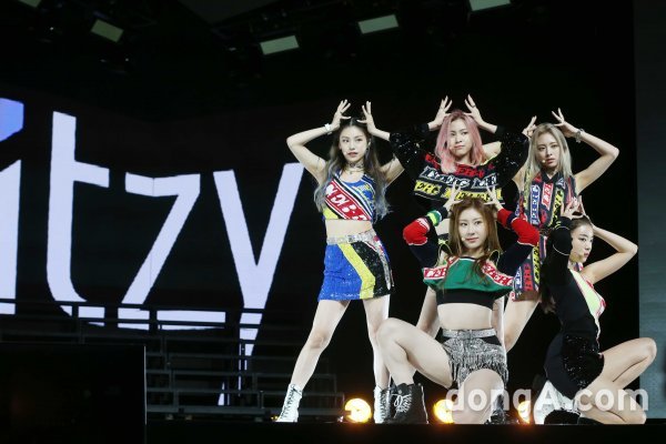 그룹 ITZY(있지)가 29일 오후 서울 용산구 블루스퀘어에서 열린 첫 번째 미니앨범 \'IT\'z ICY(있지 아이씨)\' 발매 쇼케이스에서 새로운 무대를 선보이고 있다.