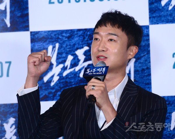 29일 서울 광진구 롯데시네마 건대입구에서 열린 영화 ‘봉오동 전투’ 시사회에서 배우 조우진이 취재진의 질문에 대답하고 있다.
