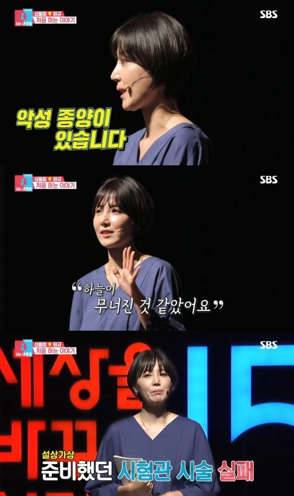 이런 가운데 신동미는 건강정기검진을 통해 악성종양을 발견하게 된 사실을 밝혀 모두를 놀라게 했다. 그는 시험관 시술까지 실패해 여자로서의 자존감이 바닥을 쳤다고 솔직한 속내를 가감없이 드러내기도 했다.