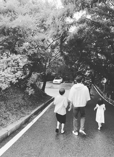 공개된 사진 속 권상우는 아들, 딸과 함께 산책을 즐기고 있는 모습이다.