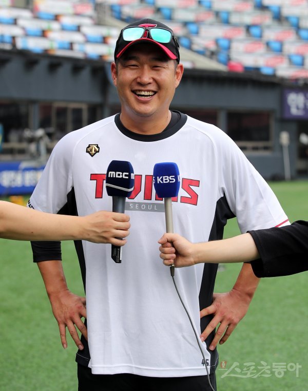 지난 28일 트레이드되어 온 LG 송은범이 방송 인터뷰를 하고 있다.