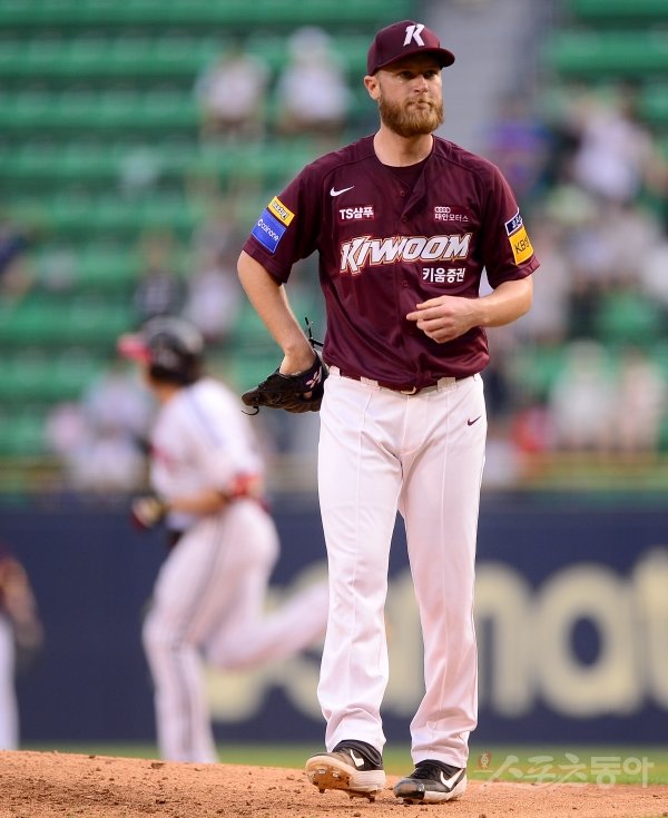 30일 서울 잠실야구장에서 ‘2019 신한은행 MY CAR KBO리그’ 키움 히어로즈와 LG 트윈스의 경기가 열렸다. 키움 요키시가 1회말 1사 솔로홈런을 허용한 후 아쉬워하고 있다.