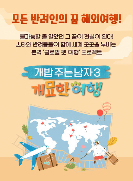 채널A 인기 예능프로그램 ‘개밥 주는 남자’의 세 번째 시리즈 ‘개밥 주는 남자-개묘한 여행’이 8월 돌아온다. ‘개묘한 여행’은 반려견, 반려모와 함께하는 여행이라는 뜻으로, 스타와 반려동물이 함께 세계 곳곳을 누비는 글로벌 여행프로젝트다. 이번 시리즈에는 연기자 박시후와 슈퍼주니어 김희철, 개그우먼 김지민이 출연한다.