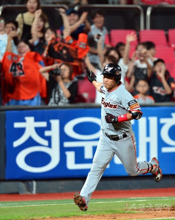 31일 경기도 수원 kt위즈파크에서에서 ‘2019 신한은행 MY CAR KBO리그’ kt 위즈와 한화 이글스의 경기가 열렸다. 7회초 2사 1루에서 한화 정근우가 좌월 역전 투런 홈런을 쏘아 올린 뒤 그라운드를 돌고 있다.