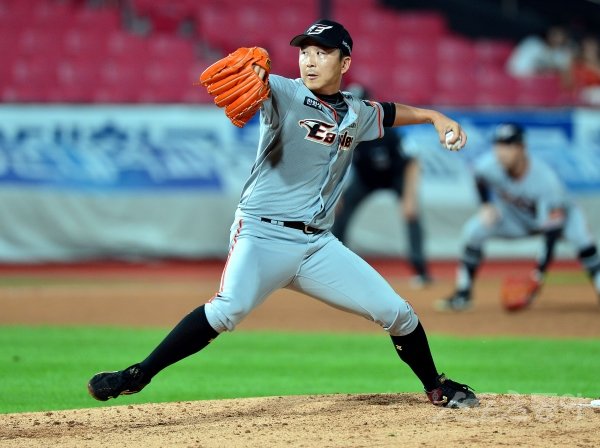 31일 경기도 수원 kt위즈파크에서에서 ‘2019 신한은행 MY CAR KBO리그’ kt 위즈와 한화 이글스의 경기가 열렸다. 8회말 1사 1루에서 한화 마무리 정우람이 구원 등판해 볼을 던지고 있다.