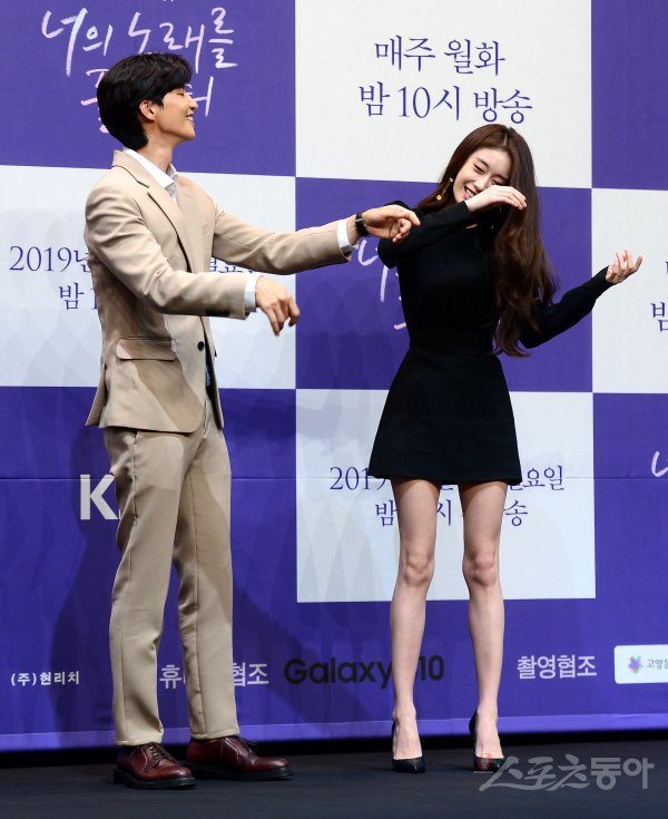 1일 서울 영등포구 라마다서울신도림호텔에서 열린 KBS 2TV 새 월화드라마 ‘너의 노래를 들려줘’ 제작발표회에서 송재림과 박지연이 포토타임를 갖고 있다.