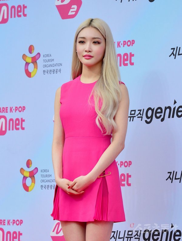 1일 서울 올림픽공원에서 열린 ‘2019 M2 X GENIE MUSIC AWARDS’(MGMA) 레드카펫에 참석한 청하가 카메라를 향해 포즈를 취하고 있다.