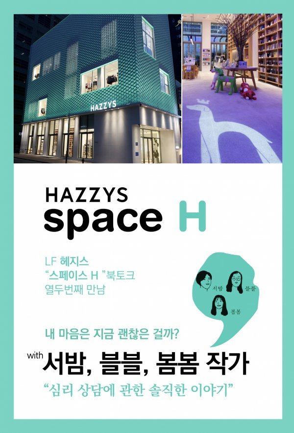 LF의 패션 브랜드 헤지스가 13일 오후 7시30분 서울 명동 플래그십스토어 스페이스H에서 산문집 ‘마음의 구석’을 출간한 작가 서밤, 블블, 봄봄과 함께하는 북 토크를 진행한다.