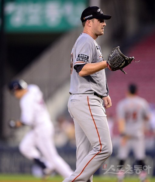 7일 서울 잠실야구장에서 ‘2019 신한은행 MY CAR KBO리그’ 한화 이글스와 두산 베어스의 경기가 열렸다. 한화 선발 채드 벨이 3회말 1사 두산 상대 타자에게 솔로홈런을 허용한 후 아쉬워하고 있다. 잠실|김진환 기자 kwangshin00@donga.com