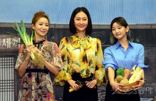 8일 서울 마포 스탠포드호텔에서 열린 tvN 예능 ‘삼시세끼 산촌편’ 제작발표회에 참석한 윤세아, 염정아, 박소담이 카메라를 향해 포즈를 취하고 있다.