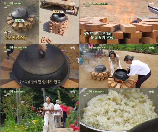 이날 멤버들은 의욕을 불태우며 “불은 어디다 피우냐. 밥은 어디다 하느냐”고 물었다. 제작진은 벽돌을 이용해 아궁이를 직접 만들면 된다고 설명했다. 다양한 아이디어를 주고받던 세 사람은 앞마당에 아궁이를 쌓아올렸다. 염정아는 아궁이를 제작하면서 체력을 다 소진했는지 “오늘 일찍 자야할 것 같다”고 고백했다. 그러면서도 케이블 설치 기사가 방문하자 “TV는 봐야지. ‘강식당’ 봐야해”라고 말해 웃음을 자아냈다.