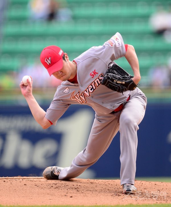 11일 서울 잠실야구장에서 ‘2019 신한은행 MY CAR KBO리그’ SK 와이번스와 LG 트윈스의 경기가 열렸다. SK 박종훈이 선발 등판해 힘차게 공을 던지고 있다.