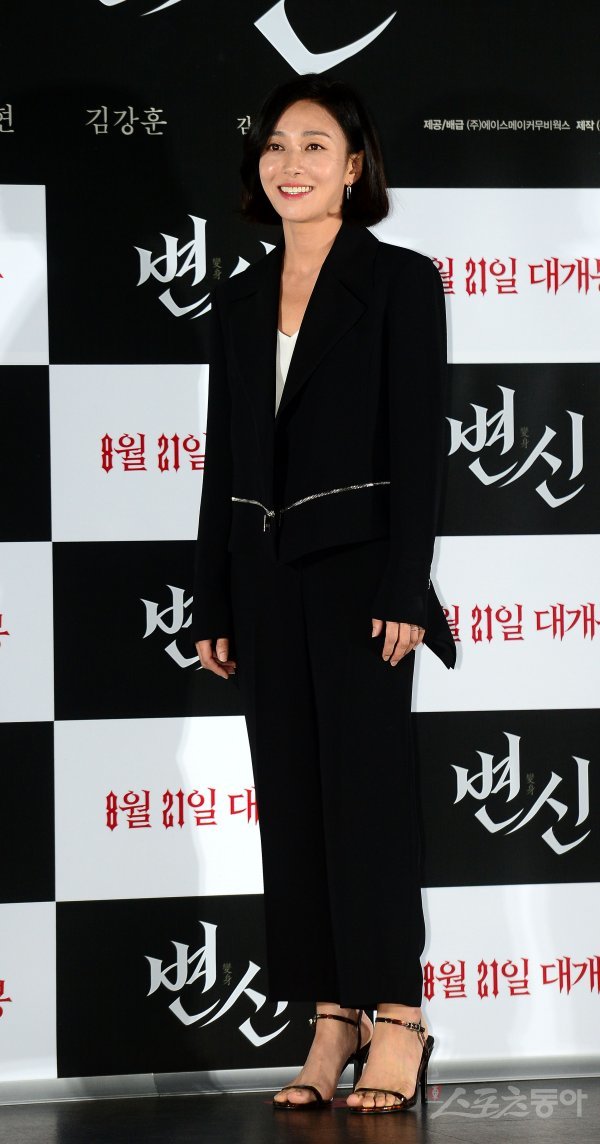 12일 서울 광진구 롯데시네마 건대입구에서 열린 영화 ‘변신’ 시사회에서 장영남이 포토타임을 갖고 있다.