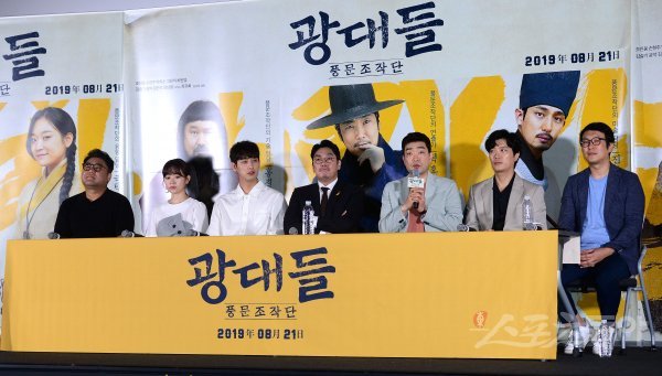 13일 서울 CGV 용산아이파크몰에서 열린 영화 ‘광대들: 풍문조작단’ 시사회에서 손현주가 취재진의 질문에 대답하고 있다.