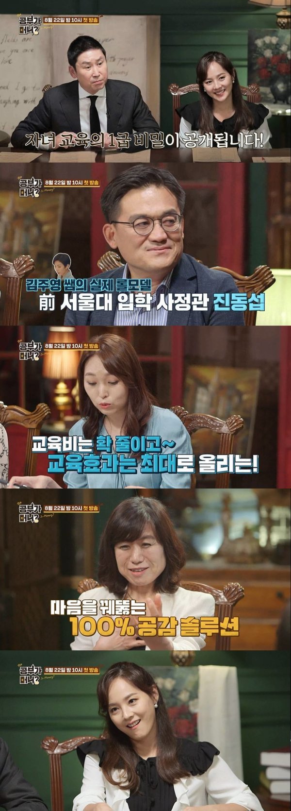 ‘공부가 머니?’에는 사교육 1번지 대치동에서 세 아이를 키우고 있는 배우 임호와 S대학 입시를 준비하는 고등학생 아들을 둔 마라토너 이봉주, 최근 둘째 딸 로린을 나은 후 아이 맞춤형 외국어 교육을 펼치고 있는 유진의 가정이 출연한다.