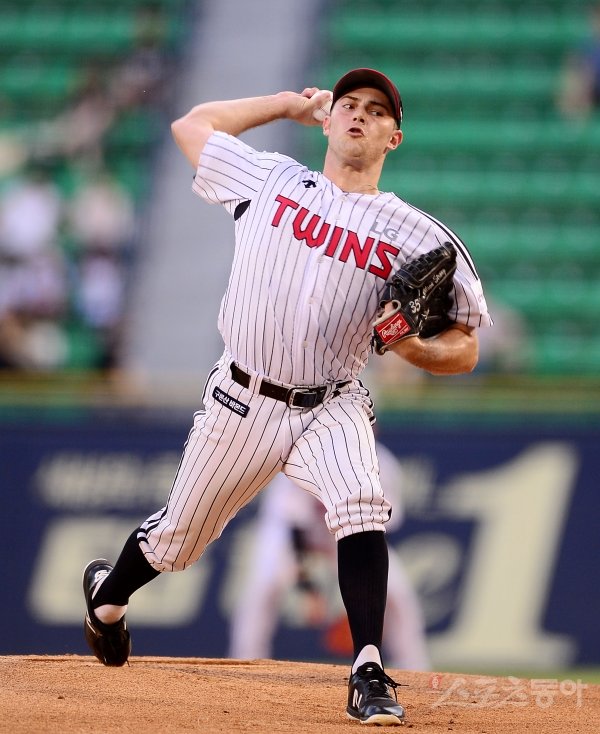 14일 서울 잠실야구장에서 ‘2019 신한은행 MY CAR KBO리그’ 키움 히어로즈와 LG 트윈스의 경기가 열렸다. LG 윌슨이 선발 등판해 힘차게 공을 던지고 있다.
