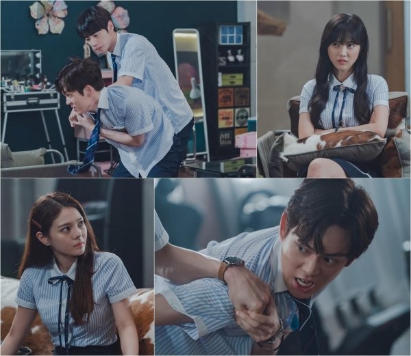 그런 가운데, 15일 10화 방송을 앞두고 갈등이 폭발한 천명고 4인방의 모습이 공개됐다. 유범진과 이기훈은 격렬한 몸싸움을 벌여 눈길을 끈다. 유범진은 차가운 표정으로 이기훈의 양손을 잡아 누르고 있고, 제압당한 이기훈은 분노를 터트리고 있다. 두 사람을 지켜보는 한태라와 나예리의 눈초리는 매섭게 빛난다. 서로를 차갑게 쏘아보는 이들의 모습에 아지트에는 싸늘한 냉기가 감돈다.