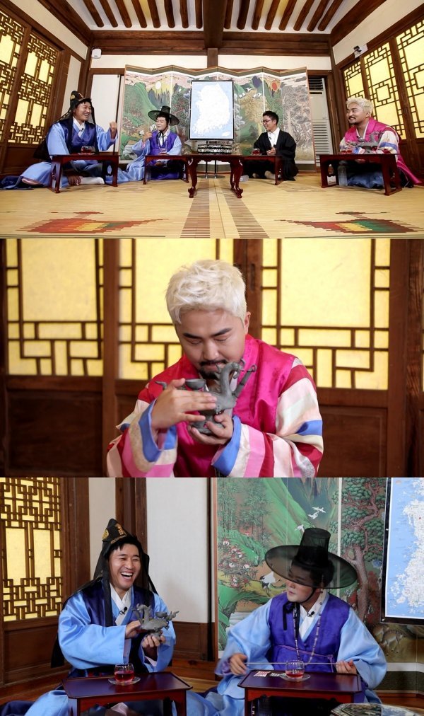 멤버들의 주목을 한 몸에 받은 제4대원의 정체는 바로 김종민. 때때로 보이는 김종민의 ‘간헐적 천재’ 면모는 예능계 화제를 불러일으킨 바. 사실 설민석도 인정한 ‘역사 마니아’라는 김종민은 첫 등장부터 허당미(美)를 발산해 현장을 웃음바다로 만들었다고 한다.