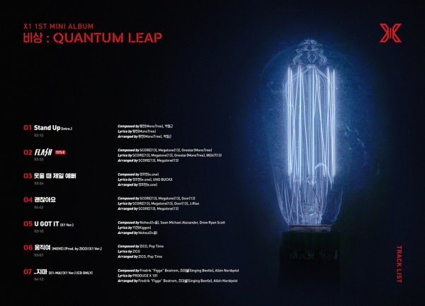 19일 X1의 공식 SNS를 통해 첫 번째 미니 앨범 ‘비상 : QUANTUM LEAP(비상 : 퀀텀 리프)’ 트랙리스트가 적힌 이미지가 게재됐다.