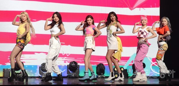 걸그룹 ‘에버글로우’가 19일 서울 광진구 예스24 라이브홀에서 2번째 싱글앨범 ‘HUSH’ 발매 쇼케이스를 갖고 화려한 공연을 펼치고 있다.