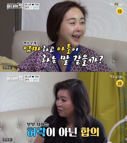 진화는 진화는 "아내가 말을 좀 부드럽게 했으면 좋겠다. 나이 차이가 있어 생각이 다를 수 있지만"이라고 고민을 토로했고, 진화와 1:1 대화를 마친 박사는 함소원에게 부부 사이가 아닌 엄마와 아들 사이 같다고 일침을 날렸다.