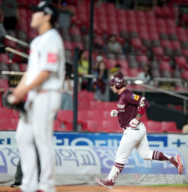 21일 수원KT위즈파크에서 ‘2019 신한은행 MY CAR KBO리그’ 키움 히어로즈와 KT 위즈 경기가 열렸다. 9회초 1사 2,3루 키움 박병호가 좌월 스리런 홈런을 날린 후 그라운드를 돌고 있다.