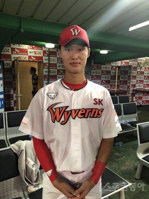 SK 김창평이 21일 인천 롯데전 직후 인터뷰를 마친 뒤 포즈를 취하고 있다. 인천 | 강산 기자 posterboy@donga.com