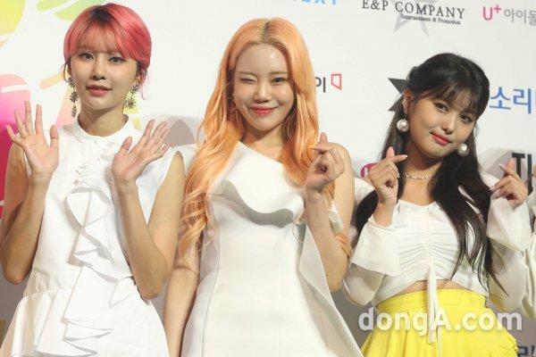 그룹 모모랜드의 혜빈, 주이, 아인(왼쪽부터)가 22일 오전 서울 송파구 올림픽공원 체조경기장에서 열린 2019 소리바다 베스트 케이뮤직 어워즈\' 블루카펫 행사에 참석하고 있다.