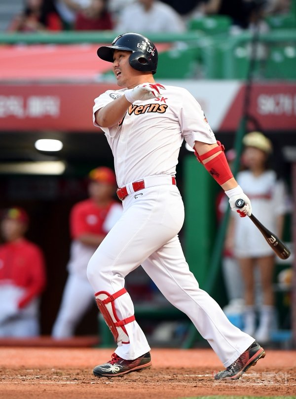 24일 인천 SK행복드림구장에서 ‘2019 신한은행 MY CAR KBO리그’ SK 와이번스와 KIA 타이거즈의 경기가 열렸다. 3회말 무사 1루에서 SK 최정이 2루타를 날리고 있다. 최정은 KBO 통산 24번째 300 2루타를 달성했다.