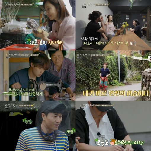 24일 방송된 MBN ‘자연스럽게’에선 현천마을에서의 세컨드 라이프에 적응해 가는 이웃 4인이 입주를 축하하기 위한 ‘완전체’ 저녁식사 이후 다양한 모험을 펼치는 모습이 공개됐다. ‘구례댁’ 전인화는 이웃 모녀와 5일장이 펼쳐지고 있는 장터를 찾았고, 은지원X김종민 콤비는 그토록 소망하던 양봉과 담금주 만들기에 입문했다. 또 막내 조병규는 김향자 할머니와 100년이 넘은 재봉틀을 함께 돌리며 돈독한 애정을 쌓았다.