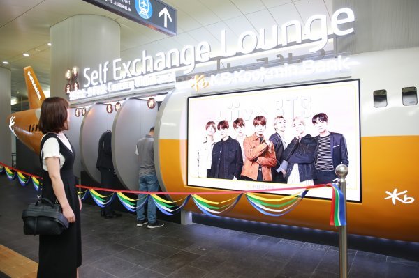 KB국민은행이 23일 공항철도 공덕역 역사 내 무인환전센터(사진)를 개점했다.