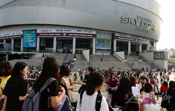 X1의 공연을 보기 위해 팬들이 모여들고 있다.