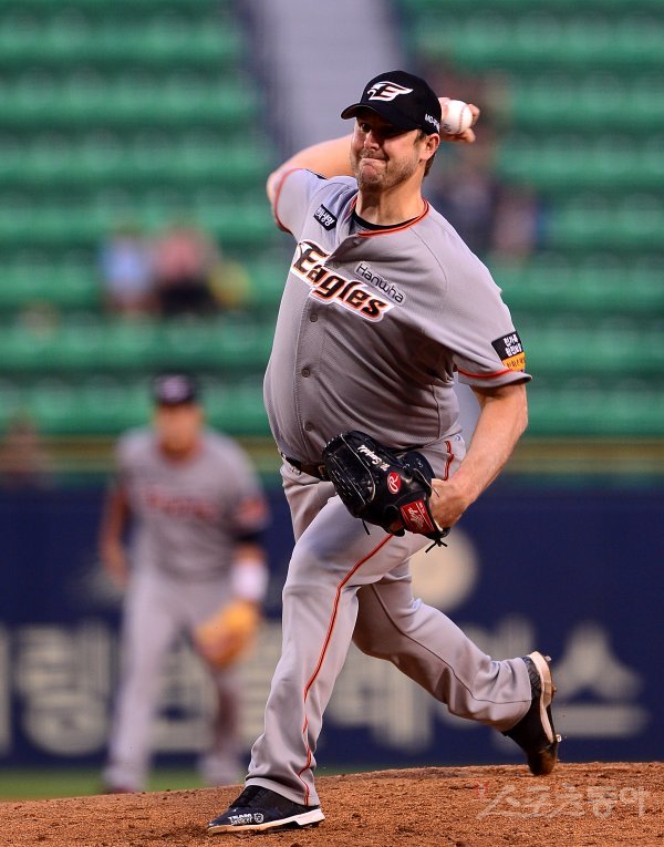 29일 서울 잠실야구장에서 ‘2019 신한은행 MY CAR KBO리그’ 한화 이글스와 LG 트윈스의 경기가 열렸다. 한화 서폴드가 선발로 등판해 힘차게 공을 던지고 있다. 잠실 | 김진환 기자 kwangshin00@donga.com