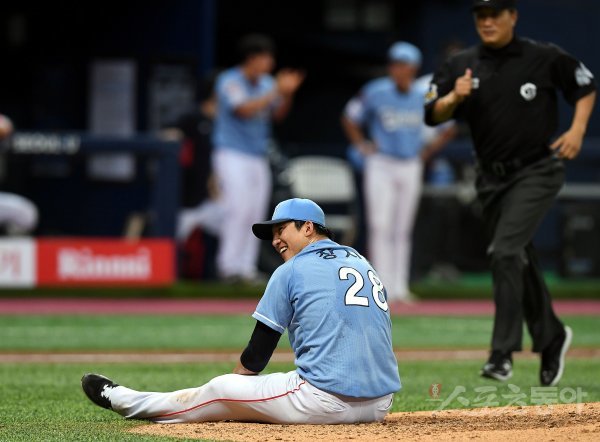 29일 서울 고척스카이돔에서 ‘2019 신한은행 MY CAR KBO리그’ 키움 히어로즈와 롯데 자이언츠의 경기가 열렸다. 5회말 2사에서 키움 서건창의 투수 앞 정면 타구를 잡은 롯데 선발 장시환이 웃음을 짓고 있다. 고척 | 김민성 기자 marineboy@donga.com